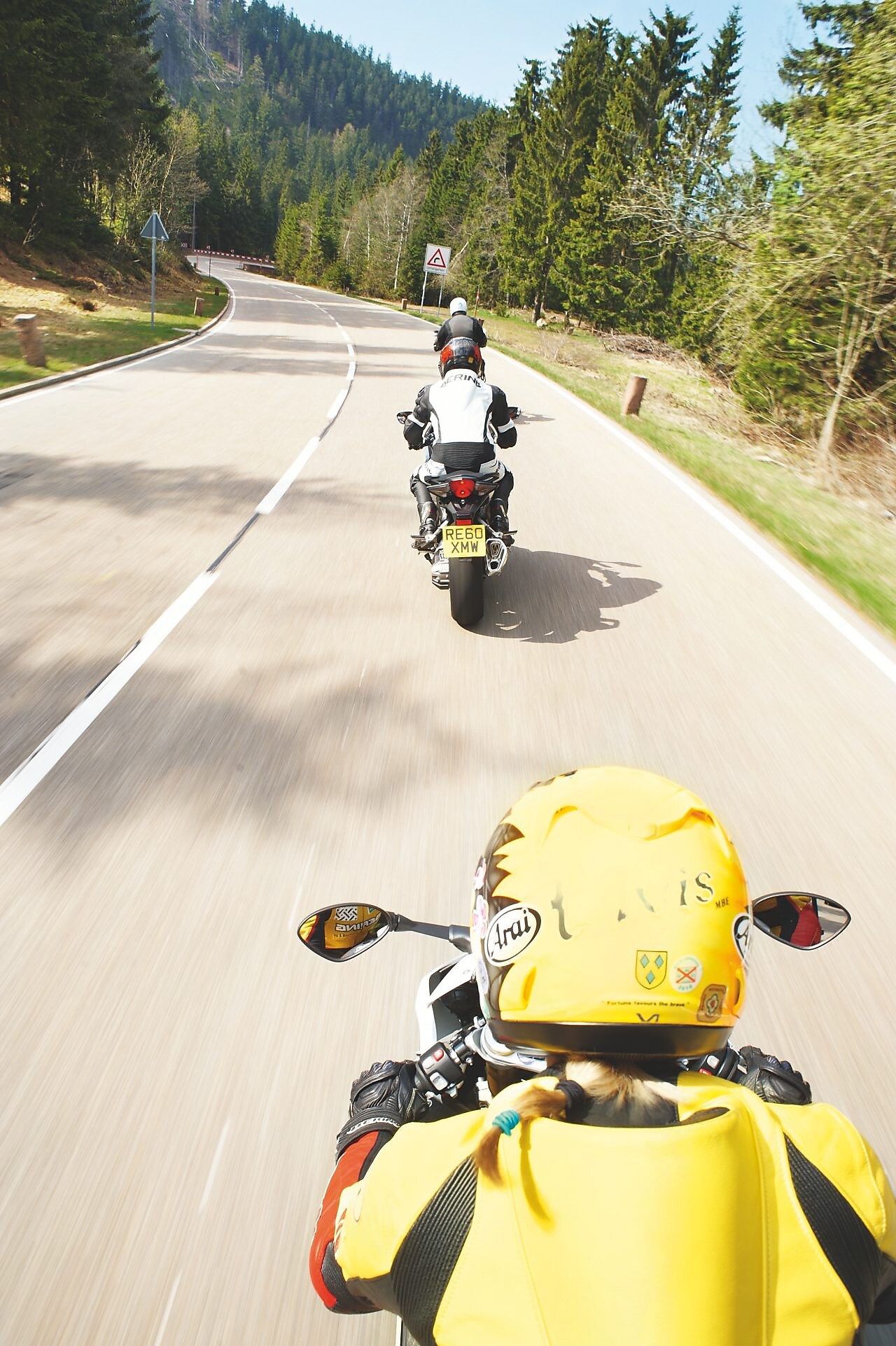 Y "M" de "Mejor ruta", posiblemente la B500 de Baden-Baden, Alemania. El autor Geoff Hill se dirige allí para decidir si esta es o no la mejor ruta de Europa para circular en moto.